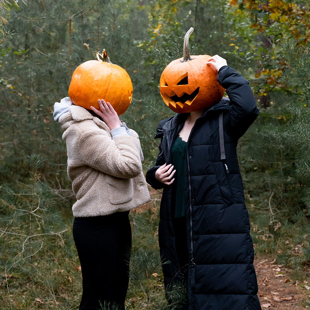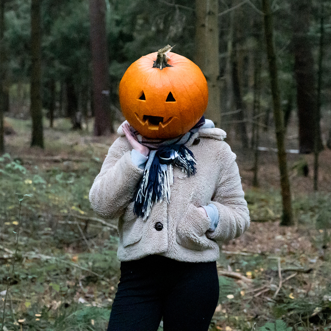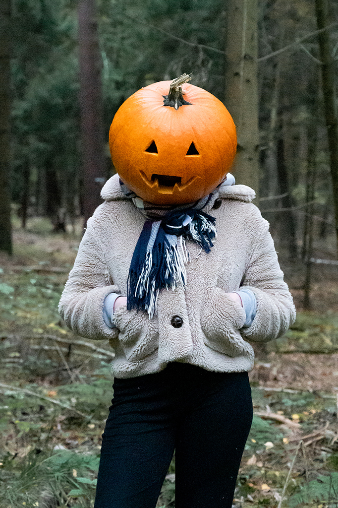 Du entscheidest natürlich selbst, ob du den Kürbiskopf aufsetzen oder lieber vor dem Kopf oder unter dem Arm halten möchtest. Falls du ihn aufsetzen willst, habe ich Einweg-Duschhauben, die du nutzen kannst, um deine Haare zu schützen. Falls du dir vorher deinen eigenen Kürbis schnitzen möchtest, darfst du auch diesen gerne mit zum Shooting bringen.